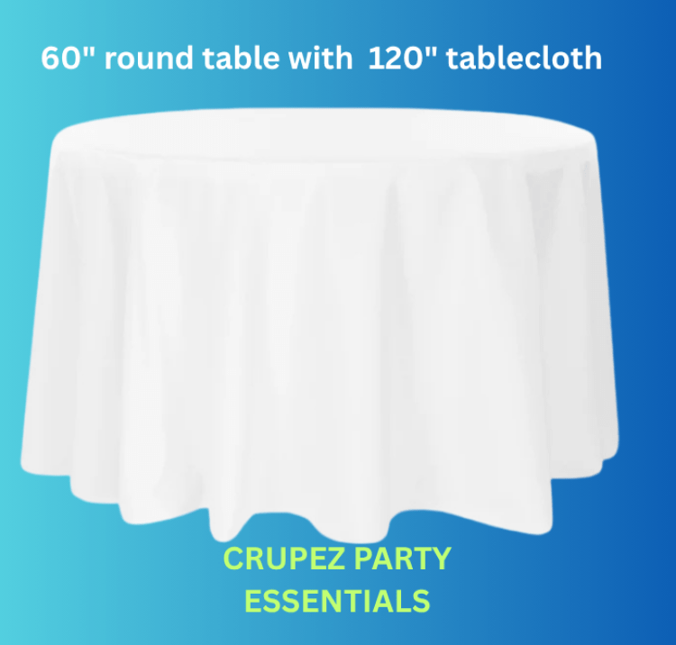 120-inch round tablecloth: Provides a formal, floor-length drop, covering the table legs completely.