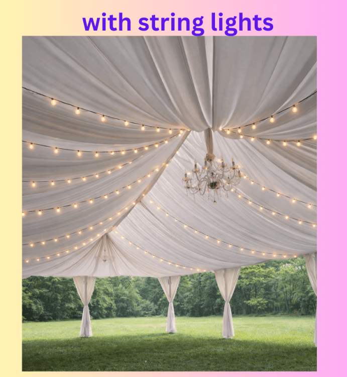 To elevate the ambiance even further, we offer several lighting options that can be added to your draped tent: