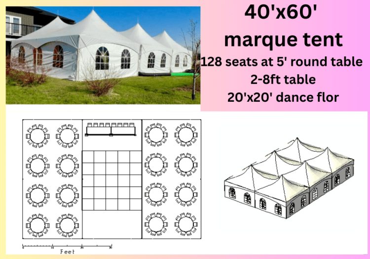 Here's what you need to know about our 40' x 60' marquee tent: